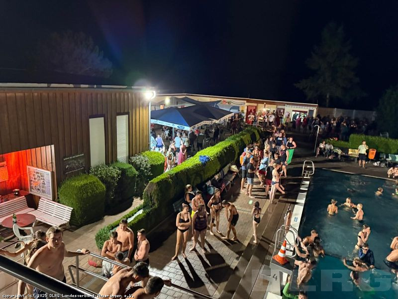 „Um für den Ansturm gerüstet zu sein und der Sicherheit Sorge zu tragen, waren wir mit 17 Rettungsschwimmern, Rettungsschwimmerinnen und Mitgliedern der Ortsgruppe im Einsatz. Außerdem wurden zusätzliche Scheinwerfer aufgestellt, die für eine traumhafte Atmosphäre sorgten und auch die Springer beim Arschbomben-Wettbewerb vom Drei-Meter-Brett gut ausleuchteten“, so Götze weiter.