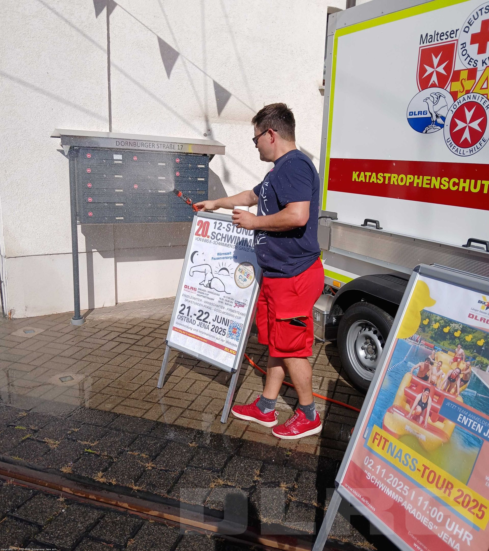Bei sommerlichen Temperaturen von 30°C wurden wir als Wasserretter natürlich aktiv und installierten einen Wasserschlauch, der von den Kindern ausgiebig als Abkühlung genutzt wurde.